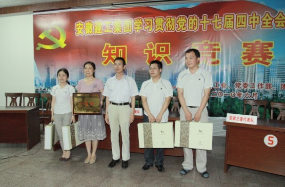 這次知識(shí)競(jìng)賽活動(dòng)由紀(jì)委、工會(huì)、黨委工作部、團(tuán)委聯(lián)合主辦,旨在深入學(xué)習(xí)宣傳貫徹黨的十七屆四中全會(huì)精神,集團(tuán)公司首次黨代會(huì)和年初工作會(huì)議精神。競(jìng)賽內(nèi)容包括黨的十七屆四中全會(huì)《決定》、《國(guó)有企業(yè)領(lǐng)導(dǎo)人員廉潔從業(yè)若干規(guī)定》、全省國(guó)有企業(yè)黨建工作會(huì)議精神、集團(tuán)首次黨代會(huì)精神和集團(tuán)2010年工作會(huì)議精神。所屬各單位積極準(zhǔn)備、認(rèn)真組織,共有18支代表隊(duì)參賽。經(jīng)過兩輪四場(chǎng)緊張角逐,安徽建工海外公司榮獲一等獎(jiǎng);省三建公司、省路橋公司榮獲二等獎(jiǎng);安徽建工國(guó)內(nèi)公司、安徽建機(jī)公司、省二建公司榮獲三等獎(jiǎng)。(安徽建工集團(tuán)文明辦)