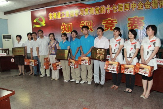 6月24日,安徽建工集團(tuán)舉辦了“學(xué)習(xí)貫徹黨的十七屆四中全會(huì)精神”知識(shí)活動(dòng)。集團(tuán)公司黨委書記張海平,紀(jì)委書記、工會(huì)主席劉振武親臨現(xiàn)場(chǎng);省國(guó)資委組宣處處長(zhǎng)蔡時(shí)清、紀(jì)委副處級(jí)紀(jì)檢監(jiān)察員呂葆輝應(yīng)邀出席。
