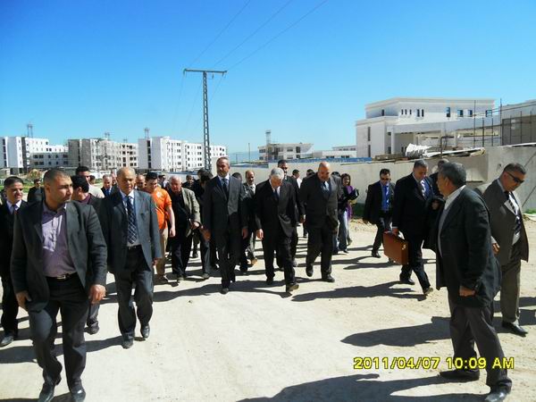2011年4月7日,阿爾及利亞國家教育部部長蒞臨我實(shí)施的康斯坦丁大學(xué)城項(xiàng)目視察指導(dǎo)工作,康斯坦丁省長、全國大學(xué)生委員會領(lǐng)導(dǎo)、DLEP局長及當(dāng)?shù)馗鹘缑襟w隨同前往。