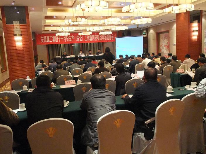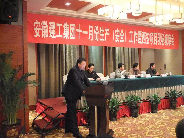 11月4日,安徽建工集團(tuán)十一月份生產(chǎn)(安全)工作暨西安項(xiàng)目現(xiàn)場觀摩會(huì)在安徽三建西北公司召開。集團(tuán)公司副總經(jīng)理、總工程師戴良軍、總經(jīng)理助理郭道真、各單位分管領(lǐng)導(dǎo)、安全部門負(fù)責(zé)人及集團(tuán)公司機(jī)關(guān)部門負(fù)責(zé)人等50多人參加了會(huì)議。與會(huì)人員觀摩了西安市繞城基地項(xiàng)目施工現(xiàn)場。項(xiàng)目經(jīng)理就工程概況、工程進(jìn)度、項(xiàng)目管理及工程重難點(diǎn)、質(zhì)量控制、安全生產(chǎn)、文明創(chuàng)建以及企業(yè)文化宣傳等各方面建設(shè)情況進(jìn)行了匯報(bào)。安徽三建西北公司經(jīng)理劉順利就西北公司的成立、發(fā)展、經(jīng)營規(guī)模、取得成績和發(fā)展方向等進(jìn)行了介紹。