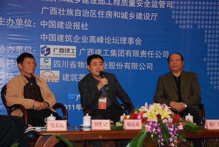 胡運成董事長應邀參加主題為“建筑企業(yè)如何通過拓展融資渠道、提升盈利能力等方式,以促進企業(yè)創(chuàng)新發(fā)展?”的嘉賓對話。胡運成董事長結(jié)合安徽建工近年來改革發(fā)展實際,圍繞對話主題,就借智借力、整合資源、走差異化之路、打造企業(yè)融資平臺以及強化項目管理,控制項目風險,提高企業(yè)盈利水平等發(fā)表了自己的獨到見解,贏得了與會者廣泛關(guān)注和共鳴。