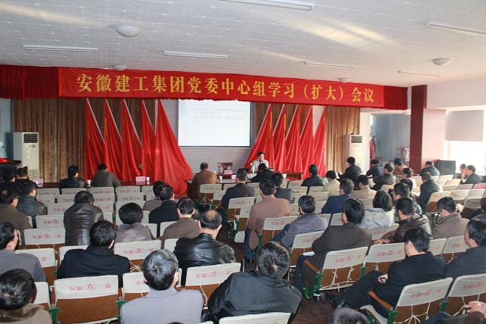 12月2日上午,安徽建工集團召開黨委中心組(擴大)學(xué)習(xí)會議,主要學(xué)習(xí)貫徹黨的十七屆六中全會和省第九次黨代會精神。集團公司領(lǐng)導(dǎo)、部門負責(zé)人,所屬各單位領(lǐng)導(dǎo)班子成員參加了這次學(xué)習(xí),集團公司董事長、黨委書記胡運成主持會議并作重要講話。