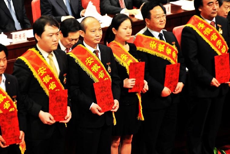 全省勞動(dòng)模范和先進(jìn)集體表彰大會(huì),每五年舉行一次。這次共表彰679名省勞動(dòng)模范(先進(jìn)工作者)和99個(gè)先進(jìn)集體代表,趙時(shí)運(yùn)總經(jīng)理作為省勞模代表登臺(tái)領(lǐng)獎(jiǎng)。