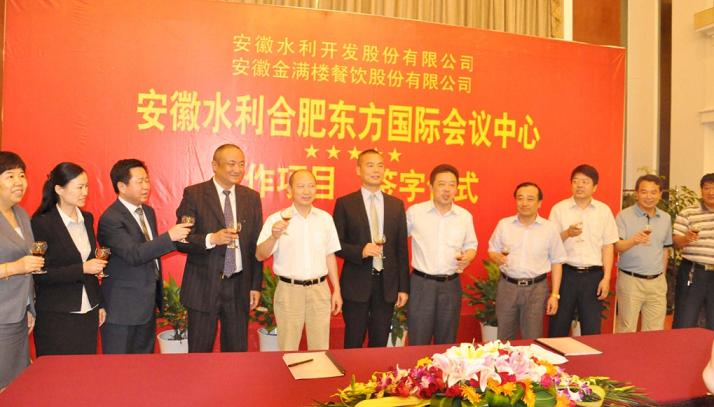 7月6日,安徽水利開發(fā)股份有限公司攜手安徽金滿樓餐飲股份有限公司簽約儀式在合肥隆重舉行。肥東縣委書記楊宏星攜縣縣政府、縣人大、縣政協(xié)及縣直有關部門負責同志出席會議,安徽建工集團黨委副書記、副董事長、總經理、安徽水利董事長趙時運出席簽字儀式并致辭,安徽水利常務副總陳圣剛出席儀式并代表公司簽字,安徽金滿樓餐飲股份董事長張青華攜主要負責同志參加了會議。