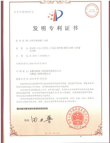 同時(shí),集團(tuán)公司與路橋集團(tuán)聯(lián)合研發(fā)的“紅砂巖路基施工方法”也于當(dāng)日獲得發(fā)明專利授權(quán)(專利號(hào):ZL 2010 1 0140922.4)。