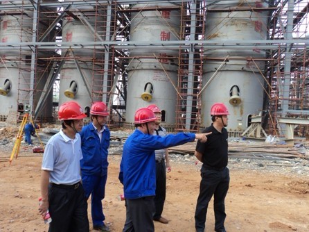 戴總一行深入施工現(xiàn)場,仔細察看了220萬噸/年連續(xù)液相柴油加氫(Ⅳ)裝置等三個項目工程建設情況,該項目主要工作是220萬噸/年循環(huán)液相柴油加氫(Ⅳ)裝置爐反應、分餾、壓縮機區(qū)及其它公用部分設備、工藝管道安裝和鋼結構制作安裝等。在認真聽取了項目經(jīng)理李貴林關于項目的進度、質(zhì)量和安全文明施工情況后,戴總對220萬噸/年連續(xù)液相柴油加氫(Ⅳ)裝置等項目進展情況和總體質(zhì)量給予了充分肯定。就下一階段工作,戴總指出,一是繼續(xù)加強項目的管理工作,確保工程建設有序開展;二是加強動力設備安裝工藝的技術研究,提高動力設備安裝精度;三是加強人員的培訓學習,培養(yǎng)高技能人才,進一步提高管道焊接施工質(zhì)量;四是夏季高溫,施工現(xiàn)場要注意防暑降溫,加強安全檢查,消除隱患,做好現(xiàn)場的安全文明施工。
