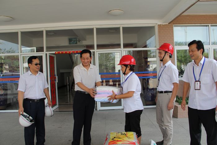 8月1日下午,烈日炎炎,酷暑難耐。集團(tuán)公司工會(huì)主席、紀(jì)委書記牛曙東在集團(tuán)工會(huì)副主席吳曉伍、女工部主任胡愛紅陪同下,風(fēng)塵仆仆地來到安徽建機(jī)公司,看望慰問奮戰(zhàn)在生產(chǎn)一線的員工,并送來了許多消暑日用品及綠豆、白糖等。