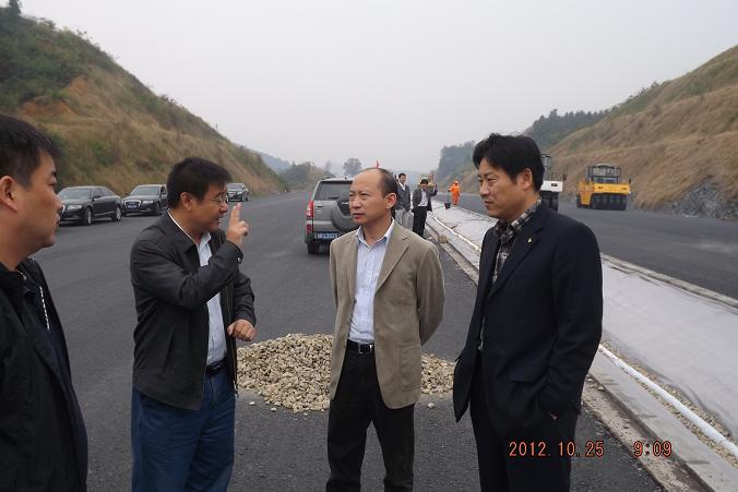 10月25日上午,安徽建工集團(tuán)總經(jīng)理趙時(shí)運(yùn)、副總經(jīng)理劉家靜、戴良軍、許克順、辦公室主任胡六中一行蒞臨宣寧路面02標(biāo),深入生產(chǎn)建設(shè)一線,視察并指導(dǎo)項(xiàng)目生產(chǎn)工作。安徽路橋公司總經(jīng)理汪衛(wèi)東,副總經(jīng)理盛明宏、劉要武、路面公司總經(jīng)理王遠(yuǎn)勝陪同視察。