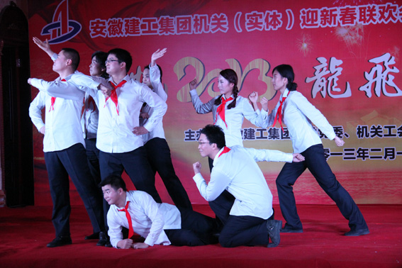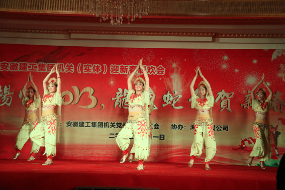 集團(tuán)公司機(jī)關(guān)及直屬經(jīng)濟(jì)實體2013年迎新春聯(lián)歡會于2月1日下午舉行。由集團(tuán)公司機(jī)關(guān)黨委、工會主辦,海外公司協(xié)辦的新春聯(lián)歡會,本著“歡樂、祥和、節(jié)儉”的原則,突出“揚(yáng)帆2013,龍飛蛇舞賀新春”這一主題,精心編排了《建工海外人》等14個節(jié)目,充分展現(xiàn)了安徽建工人特別能吃苦、特別能戰(zhàn)斗的精神風(fēng)貌,聚集正能量、激發(fā)新動力的員工風(fēng)采。集團(tuán)公司領(lǐng)導(dǎo)與機(jī)關(guān)及直屬經(jīng)濟(jì)實體350多名員工互動交流喜迎新年。