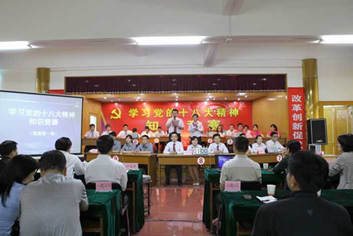 5月7日下午,省路橋公司七樓會議室座無虛席。安徽建工集團黨委、團委聯(lián)合舉辦的學習黨的十八大精神知識競賽拉開帷幕。集團公司系統(tǒng)17個單位51名選手參加比賽。本次競賽特別邀請了省國資委組宣處處長蔡時清、省國資委團工委書記、群工處處長張長夫、省國資委第七監(jiān)事會辦公室主任魏若屏到會指導并擔任比賽仲裁。集團公司副董事長、黨委副書記李長斌出席會議。省屬兄弟單位省國貿(mào)集團的黨群部門同志也到現(xiàn)場觀摩了比賽。集團公司所屬各單位黨委書記、黨工部主任及團委書記等近百人觀看了比賽。