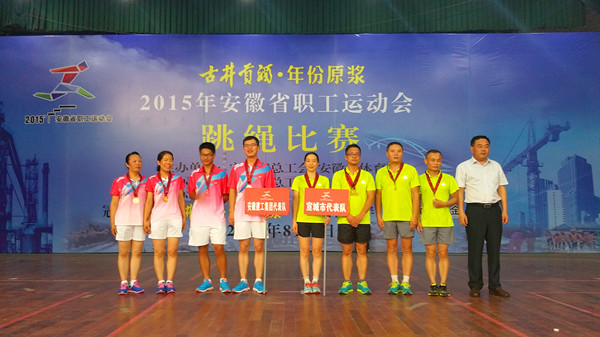 8月7日,2015年安徽省職工運動會跳繩比賽在淮南市舉行,安徽建工集團代表隊8名運動員,齊心協(xié)力,頑強拼搏,在4個大項的比賽中,共奪得二項冠軍、一項亞軍、二個第三名,總成績名列乙組第一,為安徽建工爭得了榮譽。