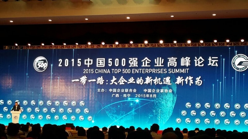 2015年8月21日至23日,中國企業(yè)聯(lián)合會在廣西南寧召開“2015中國500強企業(yè)高峰論壇”。第十屆全國政協(xié)副主席、中國企業(yè)聯(lián)合會會長王忠禹、廣西壯族自治區(qū)黨委書記、自治區(qū)人大常委會主任彭清華、廣西壯族自治區(qū)主席陳武、國務(wù)院國資委副主任劉強、工業(yè)和信息化部副部長辛國斌、韓國新萬金開發(fā)廳廳長李秉國到會并講話, 會議發(fā)布了2015中國企業(yè)500強、中國制造業(yè)企業(yè)500強、中國服務(wù)業(yè)企業(yè)500強、中國跨國公司100大榜單。