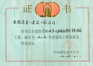該工程竣工后經(jīng)檢查驗(yàn)收,評(píng)為優(yōu)良工程,經(jīng)安徽省建設(shè)廳批準(zhǔn)評(píng)定為安徽省施工優(yōu)質(zhì)工程,并榮獲1989年度國(guó)家級(jí)優(yōu)質(zhì)工程“魯班獎(jiǎng)”。 | ||||||||