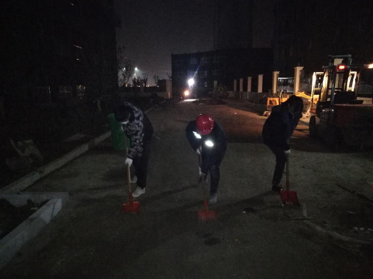 由于受到18年年末第一場(chǎng)雪的“洗禮”,積雪融化,導(dǎo)致項(xiàng)目內(nèi)的淤泥隨處可見,影響后期的施工進(jìn)度。為了實(shí)現(xiàn)白天夜晚交叉作業(yè),晚上六點(diǎn),阜陽公司黨支部書記、總經(jīng)理周鑫帶領(lǐng)全體黨員深入到泥土最多,工作難度較大的區(qū)域開展路面大清潔,并要求黨員亮明身份,積極發(fā)揮好先鋒模范作用。