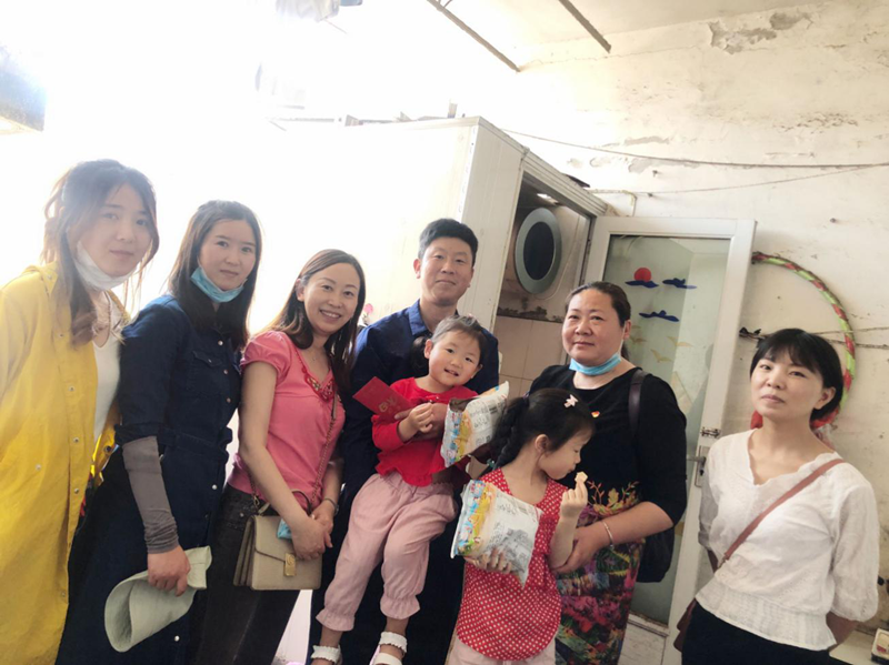 巾幗小分隊隊員們?yōu)楹⒆觽儨蕚淞丝煽诘牧闶常⑺腿ノ繂柦???吹揭患胰藬D在狹小破舊的出租屋內,隊員們感慨萬千。支部副書記李雁同志詳細詢問了程小勝妻女的健康狀況,并代表設備分公司感謝程小勝愛人為家庭的辛勤付出,因為她的操持,程小勝才能安心于工作,并鼓勵他們困難是暫時的,只要夫妻齊心協(xié)力,一定能渡過難關。