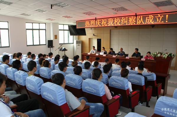 9月23日下午三點(diǎn),校衛(wèi)隊(duì)成立大會(huì)在學(xué)校錄播室舉行。副校長(zhǎng)呂良玉、學(xué)生處處長(zhǎng)付書(shū)亭、建筑工程系黨支部書(shū)記李波、機(jī)電工程系黨支部書(shū)記朱曉玲、建筑經(jīng)濟(jì)管理系黨支部書(shū)記李繼萍、保衛(wèi)處鮑少華老師和所有校衛(wèi)隊(duì)成員參加了儀式。