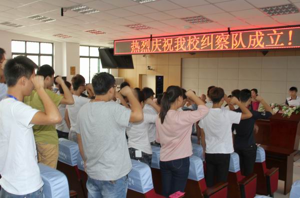 儀式上,全體校衛(wèi)隊(duì)成員齊唱校歌,校衛(wèi)隊(duì)大隊(duì)長(zhǎng)明華西同學(xué)帶領(lǐng)所有校衛(wèi)隊(duì)成員進(jìn)行了入隊(duì)宣誓,建筑工程系主席張海濤同學(xué)代表所有校衛(wèi)隊(duì)成員進(jìn)行了發(fā)言。
