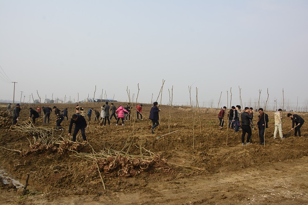 長臨河古鎮(zhèn)位于合肥市東郊,肥東縣南部,西與合肥市濱湖新區(qū)僅一河之隔。經(jīng)過近一個小時車程后,大家直接奔赴劃定的植樹區(qū)域。大家互相協(xié)助,挖坑、扶樹、松土、埋樹,動作敏捷,一氣呵成,共義務(wù)種植樹苗400余棵。一棵棵樹苗在大家的辛勤培植下,挺立在溫暖的春陽,原本比較荒涼的土地頓時顯出了生機。