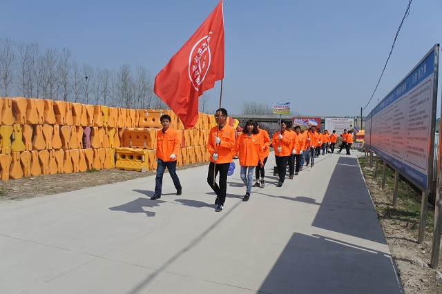 在對(duì)各班組進(jìn)行的安全教育中,項(xiàng)目部團(tuán)支部聯(lián)合安全部組織舉辦了培訓(xùn)講座并組織一線工人觀看了雷鋒同志的相關(guān)影視片、安全文明及環(huán)保知識(shí)宣傳片,使得一線作業(yè)人員也自覺(jué)地參與到了活動(dòng)中來(lái)。在施工中,一線工人用實(shí)際行動(dòng)做到了減少施工揚(yáng)塵、降低施工噪音、減少建筑垃圾。青年志愿者們也定期對(duì)項(xiàng)目部駐地和拌和站進(jìn)行清掃,使得施工現(xiàn)場(chǎng)更加整潔。