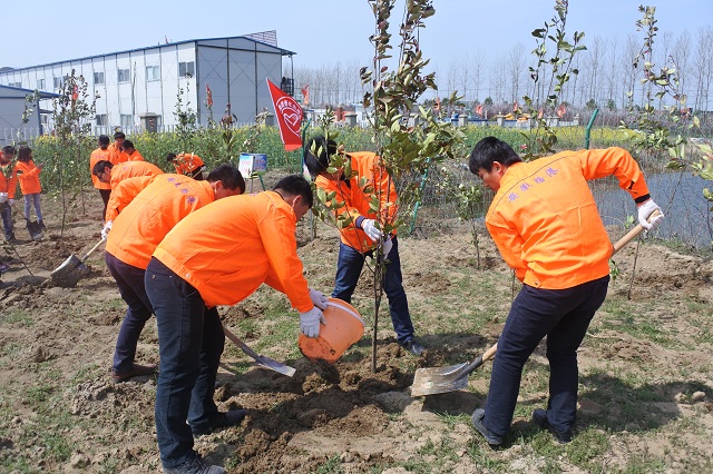 春回大地萬(wàn)物蘇,植樹(shù)添綠正當(dāng)時(shí)。為踐行環(huán)保理念,項(xiàng)目部團(tuán)支部于3月21日組織了植樹(shù)活動(dòng)。大家統(tǒng)一著裝,佩戴志愿者徽章,高揚(yáng)“建工青年志愿者服務(wù)隊(duì)”隊(duì)旗,在拌和站及項(xiàng)目部附近的空地上種植了近500棵樹(shù)苗?;顒?dòng)中,志愿者們積極行動(dòng),干得熱火朝天,大家三五人一組,揮鍬鏟土,扶苗填坑,踏土夯苗,認(rèn)真完成每一道工序??粗恢曛辍扒嗄曛驹笜?shù)”成功栽種,大家都露出了會(huì)心的笑容,項(xiàng)目部也在喜添新綠后變得生機(jī)盎然。