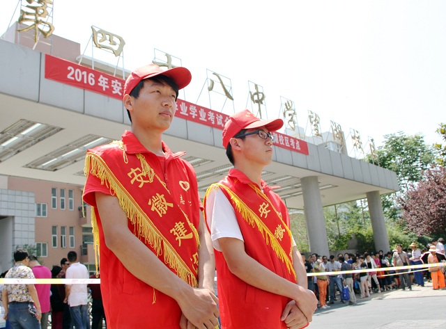6月14日-16日是我省中考日,為弘揚(yáng)“奉獻(xiàn)、友愛、互助、進(jìn)步”的志愿服務(wù)精神,營(yíng)造和諧的中考環(huán)境,安徽建設(shè)學(xué)校組織青年志愿者在合肥48中望湖校區(qū)考點(diǎn)開展了“為2016中考護(hù)航”活動(dòng),奉獻(xiàn)愛心,助力中考。
