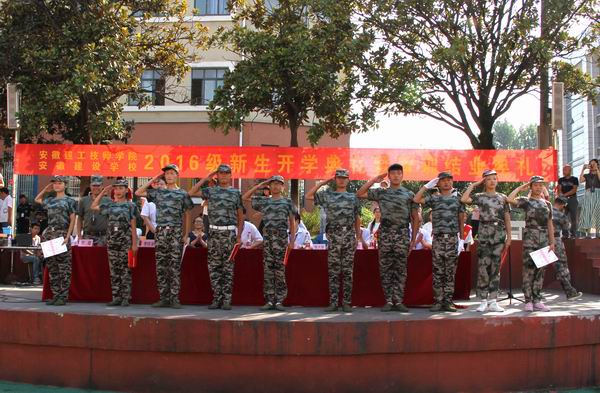 9月1日上午8點,安徽建工技師學院在田徑場召開2016級新生開學典禮暨軍訓結(jié)業(yè)典禮。院長兼黨委書記張衛(wèi)東、副院長任建設(shè)、呂良玉、院長助理張齊欣、軍訓隊隊長李超和相關(guān)部門領(lǐng)導同志出席了典禮。典禮由副院長呂良玉主持。