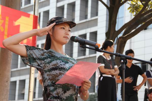 典禮上,軍訓學員們進行了分列式、擒敵拳、韻律體操、隊列會操、軍體拳和手語表演,向全院師生展現(xiàn)了軍訓期間的訓練成果。任建設(shè)副院長宣讀了《關(guān)于2016級學生軍訓的表彰決定》,對在10天軍訓中表現(xiàn)突出的連隊和學員進行了表彰。新生代表2016級幼兒教育專業(yè)的朱群同學代表全體新生進行了發(fā)言。