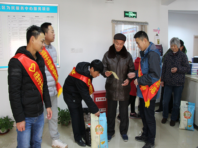 上午9時(shí),在蕪湖市弋江區(qū)興隆街道居委會(huì)的安排下,項(xiàng)目部青年志愿者們來到弋江區(qū)興隆街道辦事處,為孤寡老人、貧困家庭送上菜籽油、大米、慰問金以及新年祝福。青年志愿者們悉心詢問他們的家庭境況和身體情況,并囑咐老人們季節(jié)變化要注意保暖,行動(dòng)要注意安全,志愿者們真誠(chéng)的問候讓老人們感受到了濃濃的溫情。