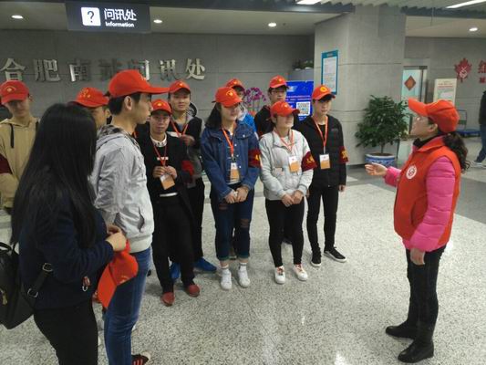 活動(dòng)開(kāi)展的三天里,我院學(xué)生每天準(zhǔn)時(shí)準(zhǔn)點(diǎn)到達(dá)合肥南站詢(xún)問(wèn)處,在志愿者培訓(xùn)老師簡(jiǎn)要介紹工作內(nèi)容以及要求后,同學(xué)們統(tǒng)一領(lǐng)取了帽子和袖章,走上了各自的服務(wù)崗位。