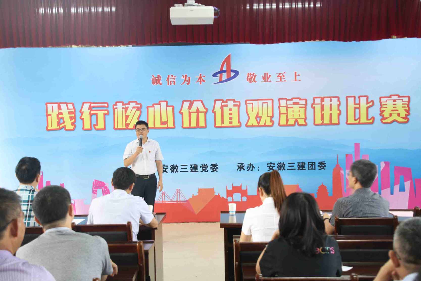 安徽三建團委響應黨委和上級團委的號召,積極推進“建工青年踐行核心價值觀”系列活動,舉辦“誠信為本 敬業(yè)至上 踐行集團核心價值觀”主題演講活動。來自一線的20名青年員工參加l了演講,他們圍繞“誠信為本 敬業(yè)至上”核心價值觀主題,結(jié)合各自工作和生活經(jīng)歷,用真摯的情感、樸實的語言、生動的事例,聲情并茂、滿懷激情地講述了安徽三建人在實現(xiàn)“省內(nèi)領(lǐng)先、國內(nèi)一流”的宏偉愿景中,立足崗位,恪守誠信、建功立業(yè)的深切體會和誠實守信、愛崗敬業(yè)的感人故事;項目工地的“老黃?!?、克難攻堅的“先鋒隊”、企業(yè)發(fā)展的“排頭兵”……在選手們聲情并茂的演講中,生動再現(xiàn)了先進模范人物堅韌不拔、敬業(yè)奉獻的形象,用發(fā)生在身邊的感人事跡、工作亮點、工作感悟和經(jīng)驗做法,感染了在座的每位觀眾,贏得了評委和觀眾的陣陣掌聲,讓每一位聽眾的心靈受到一次了正能量的洗禮。比賽中,選手們激情飽滿,感情真摯,從不同層面、不同角度傾情講述,生動刻畫模范的樸實形象,展現(xiàn)身邊員工于平凡中奉獻青春、于艱苦中助力改革、于崗位中磨練尖兵的樸實情懷。