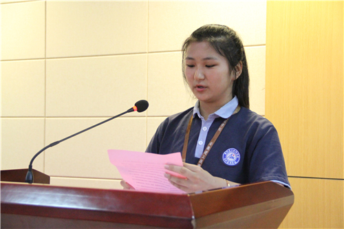 接著,來自建筑藝術(shù)系李欣蕊同學(xué)代表全體學(xué)生發(fā)言。她回顧了一學(xué)期來的學(xué)習(xí)生活體會(huì),號(hào)召全體同學(xué)認(rèn)真復(fù)習(xí),在期末考試中取得好成績(jī),文明離校,度過一個(gè)安全愉快有意義的暑假。