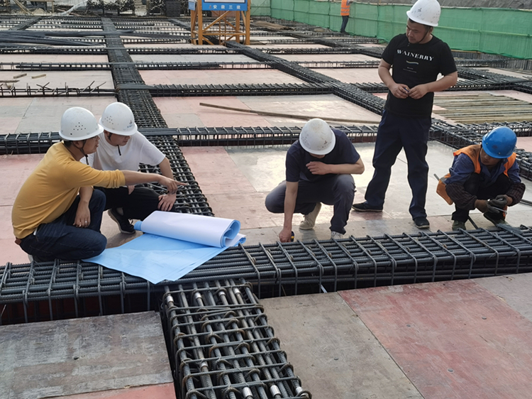 在不影響質(zhì)量的前提下要縮短工期,必須要科學(xué)組織和創(chuàng)新技術(shù)?!澳懿荒苡眯滦头浪牧蠅嚎s地下室施工工期?”第一次擔(dān)任項(xiàng)目技術(shù)負(fù)責(zé)人的青年職工吳鵬飛大膽提出建議。試試看!項(xiàng)目團(tuán)隊(duì)分頭行動,查閱資料、考察市場、詢問同行,尋找新材料。最終發(fā)現(xiàn)一種高分子自粘膠膜新型防水卷材,不僅能提高防水性能,而且能省去防水保護(hù)層的工序,至少節(jié)省了2天工期!新材料的成果極大鼓舞了項(xiàng)目小伙子。