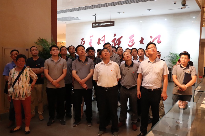 宣誓結(jié)束后,全體黨員先后參觀了渡江戰(zhàn)役總前委群雕,七大展廳、功勛長廊及千余件珍貴的革命文物。在一件件珍貴的革命文物前,在一個個犧牲英烈的姓名前,同志們不時駐足凝望;在巨幅“勝利之師”浮雕前,同志們用注目禮深切向革命先烈們致以最崇高的敬意。
