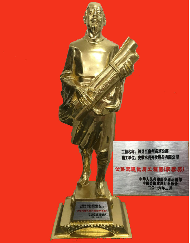 中國(guó)公路建設(shè)最高質(zhì)量獎(jiǎng)——公路交通優(yōu)質(zhì)工程(李春)獎(jiǎng)2014-2015年度評(píng)選6月19日在北京揭曉,安徽水利施工的泗宿高速公路路基工程06標(biāo)項(xiàng)目喜獲“李春獎(jiǎng)”一等獎(jiǎng),項(xiàng)目經(jīng)理葉明林、項(xiàng)目總工侯帥分別獲得優(yōu)秀項(xiàng)目經(jīng)理及優(yōu)秀項(xiàng)目總工榮譽(yù)稱號(hào)。