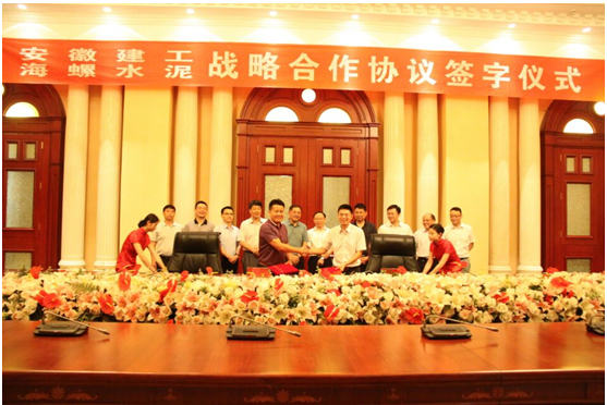 2016年6月21日,安徽建工集團(tuán)與海螺集團(tuán)戰(zhàn)略合作協(xié)議在安徽蕪湖簽訂。集團(tuán)黨委委員、副總經(jīng)理?xiàng)顝V亮與海螺集團(tuán)黨委委員、海螺水泥總經(jīng)理吳斌進(jìn)行了友好的會(huì)談并出席簽約儀式,安徽建工建材董事長、總經(jīng)理張鍵與海螺水泥銷售部部長虞水代表雙方簽署了戰(zhàn)略合作協(xié)議。