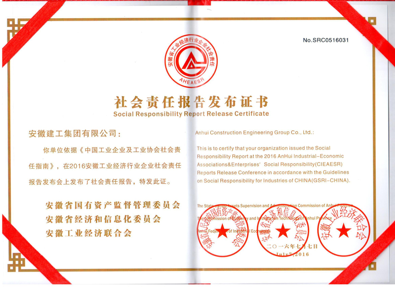 2016年7月7日上午,由安徽省國資委、省經(jīng)信委和安徽省工業(yè)經(jīng)濟(jì)聯(lián)合會(huì)聯(lián)合召開的“2016安徽省企業(yè)社會(huì)責(zé)任報(bào)告發(fā)布會(huì)”在合肥召開。安徽建工集團(tuán)首次參加發(fā)布會(huì),并在會(huì)上發(fā)布了集團(tuán)公司2015年度社會(huì)責(zé)任報(bào)告。集團(tuán)公司副總經(jīng)理、黨委委員霍向東出席發(fā)布會(huì)。