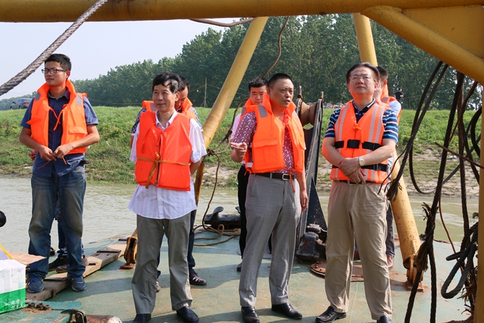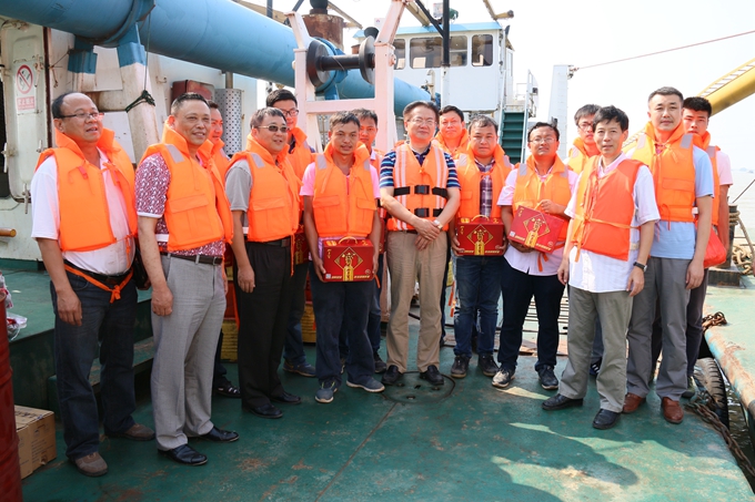 時(shí)值“三伏”盛夏、酷暑難耐,7月27日上午建工集團(tuán)總經(jīng)理劉家靜、工會(huì)主席徐曉光等一行頂著炎炎烈日、不辭辛勞,來到正在安徽交航青弋江河道中進(jìn)行河道清淤的“蛟龍?zhí)枴蓖谀啻?,為正在船上施工作業(yè)的船員們帶來關(guān)懷關(guān)愛、送來防暑降溫物品。集團(tuán)公司總經(jīng)理助理、工程管理部主任童宗勝,集團(tuán)工會(huì)副主席吳曉伍,安徽交航董事長(zhǎng)、黨委書記、總經(jīng)理李世龍等陪同慰問。