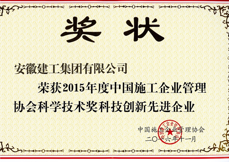 根據(jù)《中國施工企業(yè)管理協(xié)會科學技術(shù)獎評選管理辦法》的規(guī)定,經(jīng)省協(xié)會推薦、科委辦公室初審、專家網(wǎng)絡評審、專家委員會評審、科學技術(shù)委員會審定,中國施工企業(yè)管理協(xié)會做出《中國施工企業(yè)管理協(xié)會關(guān)于表彰2015年度科學技術(shù)獎的決定》(中施企協(xié)字﹝2016﹞68號),授予安徽建工集團等159家企業(yè)科技創(chuàng)新先進企業(yè)獎。