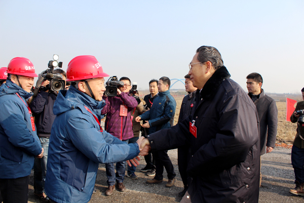 動員會上,安徽省委書記李錦斌下達工程建設動員令,安徽省委副書記、代省長李國英致辭,國家發(fā)改委副主任張勇、水利部副部長劉寧、交通運輸部副部長何建中、河南省政府副秘書長胡向陽等出席并講話,大會由安徽省委常委、常務副省長吳存榮主持。安徽建工集團黨委書記、董事長趙時運,副總經(jīng)理許克順、王厚良,總經(jīng)理助理童宗勝,安徽水利黨委副書記、紀委書記戴樹明,副總經(jīng)理楊海飛、徐少華等作為施工方代表出席大會。戴樹明同志代表施工單位現(xiàn)場宣誓。