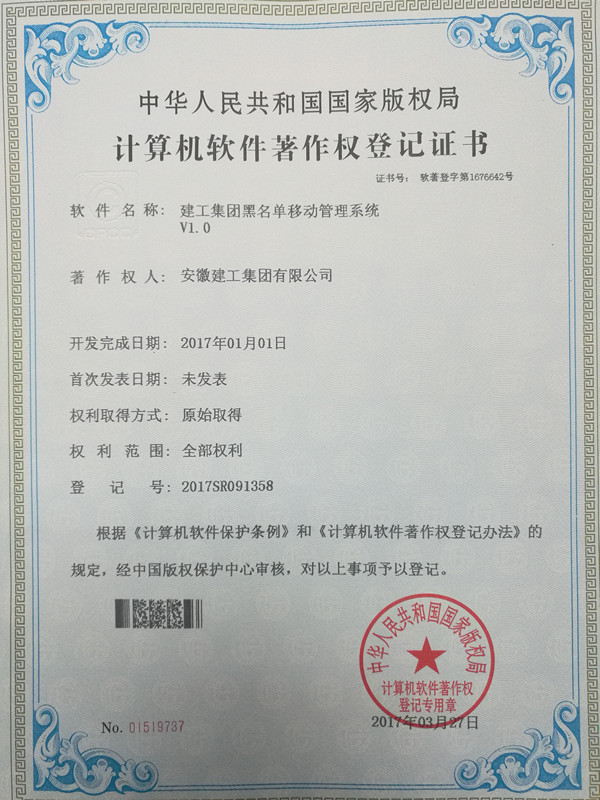 近日,由集團(tuán)信息管理部自主開(kāi)發(fā)的《建工集團(tuán)黑名單管理系統(tǒng)V1.0》、《建工集團(tuán)黑名單移動(dòng)管理系統(tǒng)V1.0》獲得計(jì)算機(jī)軟件著作權(quán)登記證書(編號(hào):軟著登字第1676370號(hào)、軟著登字第1676642號(hào)),截至目前,集團(tuán)信息管理部已經(jīng)獲得5項(xiàng)軟件著作權(quán)證書。