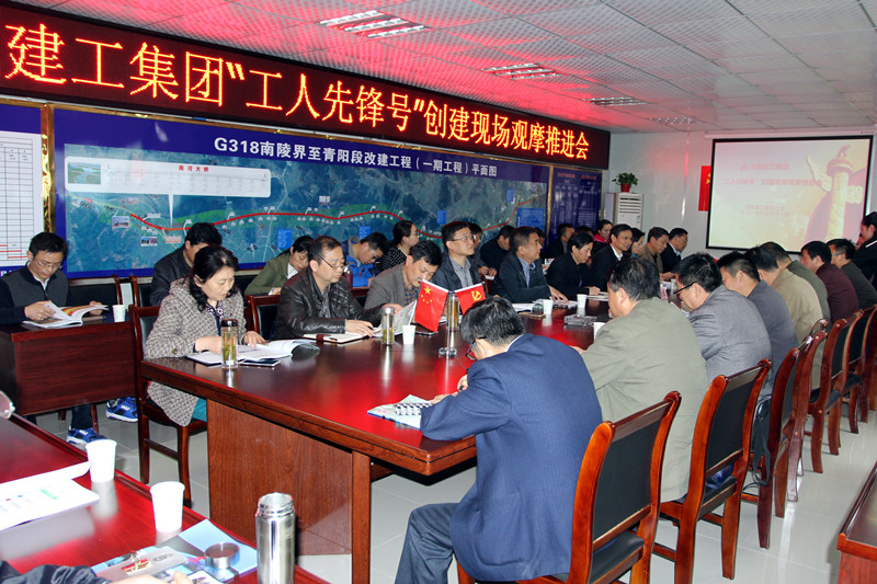 4月11日,安徽建工集團(tuán)“工人先鋒號(hào)”創(chuàng)建現(xiàn)場(chǎng)觀摩推進(jìn)會(huì)在安徽省路港工程公司G318南陵界至青陽(yáng)段改建(一期)工程項(xiàng)目部召開(kāi)。所屬各單位工會(huì)主要負(fù)責(zé)人和2017年度列入創(chuàng)建計(jì)劃的集體代表參加會(huì)議。集團(tuán)公司工會(huì)主席徐曉光出席會(huì)議并講話。推進(jìn)會(huì)由集團(tuán)公司工會(huì)副主席吳曉伍主持。