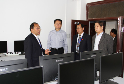 開幕式后,劉家靜一行在學院張衛(wèi)東院長等班子成員的陪同下,參觀了學院鋼筋工、砌筑工、木工、建筑裝飾、汽車維修、數(shù)控、給排水、樓宇智能仿真、計算機硬件檢測與維修、BIM機房等10余個實訓教室和數(shù)字一體化教室。參觀過程中,大家聽取張衛(wèi)東介紹了學院“高端引領(lǐng)、特色立?!钡霓k學理念、新校區(qū)建設(shè)進展情況、實訓工作開展情況以及學生在國家級和省級技能大賽上取得的成績等方面工作。