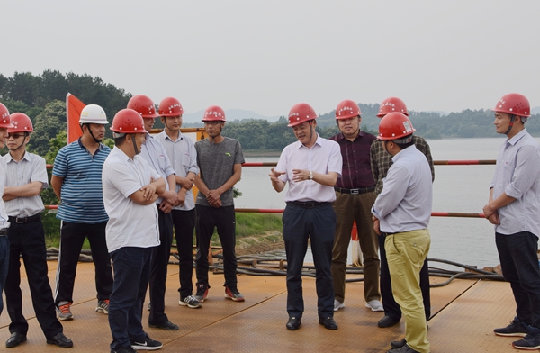 5月24日下午,集團(tuán)公司副總經(jīng)理、總工程師戴良軍到安徽路橋公司萬佛湖02標(biāo)項(xiàng)目檢查指導(dǎo)工作,集團(tuán)總工辦副主任崔林釗,安徽路橋公司副總經(jīng)理、總工程師彭申凱,副總經(jīng)理任杰陪同。