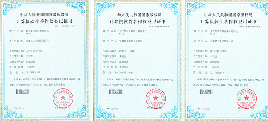 6月16日,由集團(tuán)信息管理部自主開(kāi)發(fā)的《建工集團(tuán)經(jīng)營(yíng)管理系統(tǒng)V1.0》、《建工集團(tuán)工程項(xiàng)目管理系統(tǒng)V1.0》、《建工集團(tuán)項(xiàng)目安全管理系統(tǒng)V1.0》獲得計(jì)算機(jī)軟件著作權(quán)登記證書(shū)(編號(hào):軟著登字第1844682號(hào)、軟著登字第1840900號(hào)、軟著登字第1840932號(hào))。