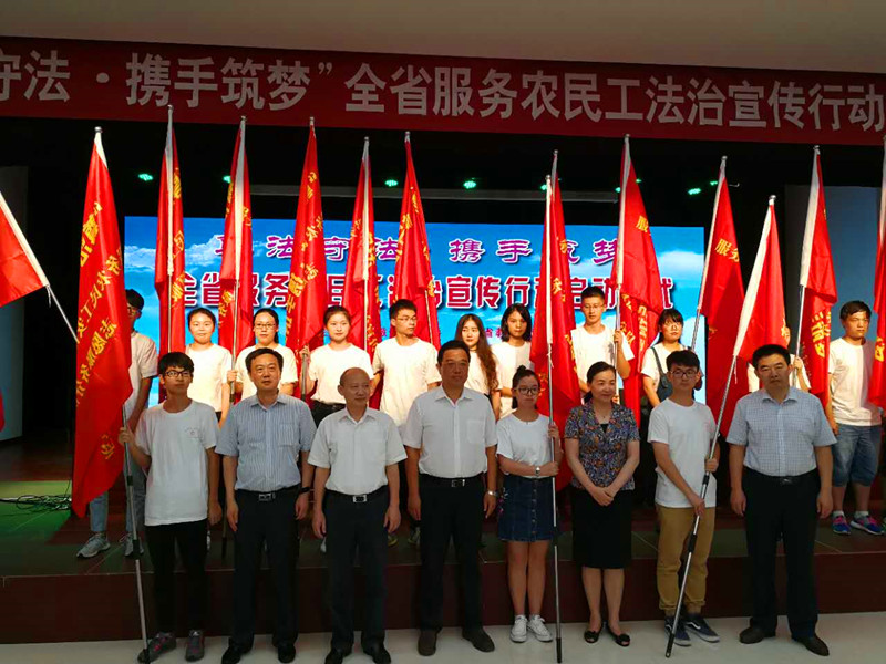 之后,童懷偉主席向法治宣傳服務(wù)隊(duì)學(xué)生代表授旗。啟動(dòng)儀式后,省職工維權(quán)法律顧問(wèn)團(tuán)成員進(jìn)行了首場(chǎng)法治宣講。