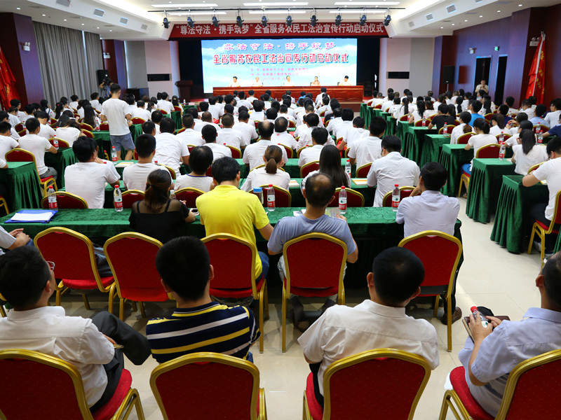 7月14日下午,由省總工會(huì)、省教育廳主辦,安徽建工集團(tuán)工會(huì)承辦的安徽省“尊法守法·攜手筑夢(mèng)”服務(wù)農(nóng)民工法治宣傳行動(dòng)啟動(dòng)儀式在安徽建工集團(tuán)舉行。省政協(xié)副主席、省總工會(huì)主席童懷偉,省總工會(huì)副主席李素萍,安徽建工集團(tuán)黨委書記、董事長(zhǎng)趙時(shí)運(yùn)等領(lǐng)導(dǎo)出席;農(nóng)民工代表、職工代表及大學(xué)師生志愿者代表等300多人參加了啟動(dòng)儀式。