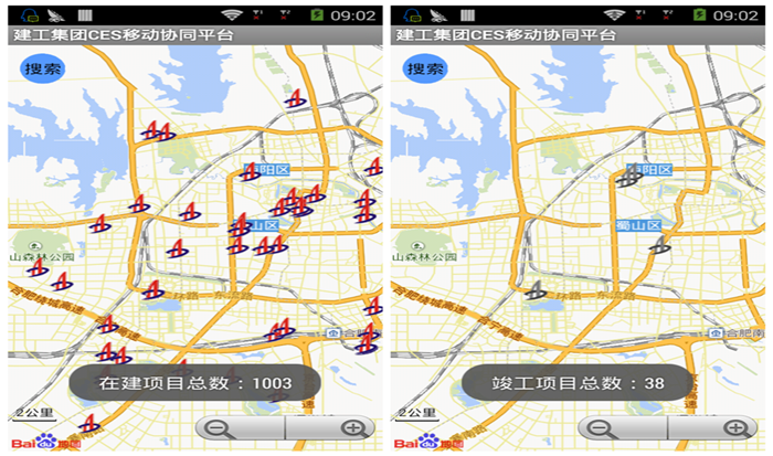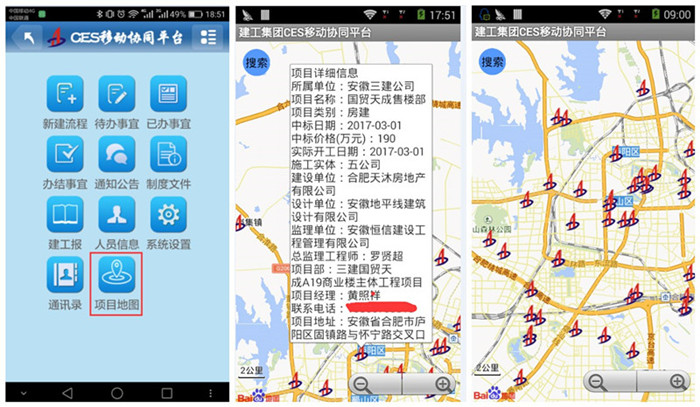 通過(guò)移動(dòng)端實(shí)時(shí)項(xiàng)目地圖可以清晰而詳盡地展現(xiàn)集團(tuán)所有項(xiàng)目信息,滿(mǎn)足用戶(hù)隨時(shí)隨地的便捷使用的應(yīng)用理念。移動(dòng)端實(shí)時(shí)項(xiàng)目地圖系統(tǒng)繼承原PC端項(xiàng)目地圖用戶(hù)權(quán)限,集團(tuán)領(lǐng)導(dǎo)、市場(chǎng)經(jīng)營(yíng)部、安全監(jiān)察局、工程管理部及下屬單位的相關(guān)業(yè)務(wù)部門(mén)負(fù)責(zé)人和相應(yīng)業(yè)務(wù)部門(mén)的分管領(lǐng)導(dǎo)及下屬單位主要負(fù)責(zé)人均有移動(dòng)終端的項(xiàng)目地圖使用權(quán),和原PC端項(xiàng)目地圖用戶(hù)的權(quán)限完全一致,均可以直接對(duì)移動(dòng)端項(xiàng)目地圖系統(tǒng)的項(xiàng)目信息依據(jù)不同權(quán)限通過(guò)系統(tǒng)平臺(tái)進(jìn)行查詢(xún)和定位。集團(tuán)借助CES信息化管理平臺(tái)上線(xiàn)并啟用的移動(dòng)端實(shí)時(shí)項(xiàng)目地圖系統(tǒng)提升了集團(tuán)的項(xiàng)目管理水平。