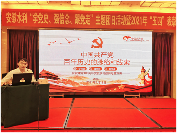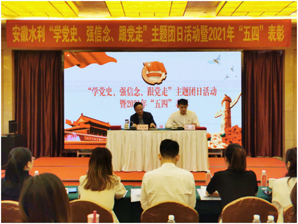 為慶祝中國共產(chǎn)黨成立100周年、五四運動102周年,傳承五四精神,賡續(xù)紅色血脈,激發(fā)青春力量,激勵廣大團員青年投身公司“十四五”高質(zhì)量發(fā)展,進(jìn)一步推深做實公司共青團系統(tǒng)黨史學(xué)習(xí)教育,2021年5月13日下午,安徽水利團委在安徽水利和順大酒店(合肥店)舉辦“學(xué)黨史 強信念 跟黨走”主題團日活動暨五四表彰會。安徽水利黨委委員、紀(jì)委書記鄭桂林出席活動并講話。所屬各團組織負(fù)責(zé)人、“一紅兩優(yōu)”受表彰人員、青年代表共50余人參加會議。