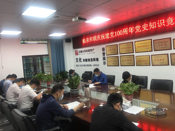 上好“創(chuàng)新黨建課”,和順地產(chǎn)所屬各單位一方面利用網(wǎng)絡(luò)平臺(tái)與互聯(lián)網(wǎng)資源,積極開(kāi)展視頻黨課,組織全體黨員集中觀看黨史紀(jì)錄片、紅色主題影片;另一方面,積極組織戶外紅色教育實(shí)踐,赴臺(tái)兒莊、藕塘革命紀(jì)念館、渡江戰(zhàn)役總指揮前委舊址等地聆聽(tīng)革命故事,感受革命情懷;除此之外,多家黨支部“以考促學(xué)”,開(kāi)展黨史知識(shí)測(cè)試、知識(shí)競(jìng)賽等活動(dòng),不斷鞏固學(xué)習(xí)效果。