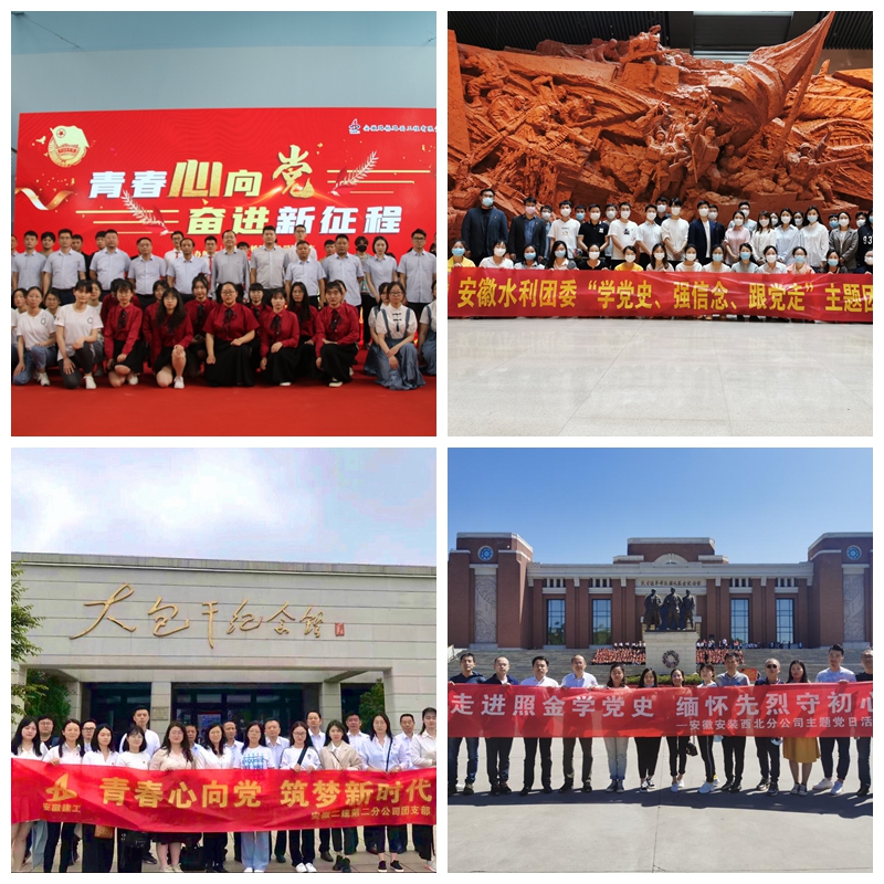 安徽三建團(tuán)委組織團(tuán)員青年參觀赴徽杭古道,重走紅軍路,實(shí)地接受黨史學(xué)習(xí)教育和紅色革命傳統(tǒng)教育。安徽二建組織團(tuán)員青年前往鳳陽(yáng)小崗村,參觀安徽紅色文化博物館,了解紅色文化,追尋紅色足跡。安徽水利、安徽路港組織團(tuán)員青年赴渡江戰(zhàn)役紀(jì)念館參觀學(xué)習(xí),面對(duì)鮮紅黨旗、團(tuán)旗,重溫入黨、入團(tuán)誓詞。路橋集團(tuán)組織團(tuán)干、優(yōu)秀團(tuán)員代表赴革命老區(qū)金寨開展“紅色基地溫黨史 高舉團(tuán)旗跟黨走”紅色教育主題活動(dòng),引導(dǎo)團(tuán)員青年感悟黨的初心使命,傳承黨的紅色基因。安徽路橋組織團(tuán)員青年來到?jīng)芸h皖南事變烈士陵園,參觀無名英雄烈士墓、主題廣場(chǎng)、主碑紀(jì)念廣場(chǎng),并向革命英烈敬獻(xiàn)花籃,重溫入團(tuán)誓詞,追憶崢嶸歲月,緬懷革命先烈,感悟偉大新四軍精神。安建建材組織前往八路軍西安辦事處紀(jì)念館,學(xué)習(xí)抗日戰(zhàn)爭(zhēng)時(shí)期革命史。海外事業(yè)部青年團(tuán)員在黨組織帶領(lǐng)下,參觀了大別山水吼革命事跡陳列館、石河區(qū)農(nóng)會(huì)舊址和梅寨紅色革命教育基地。安徽安裝組織赴照金陜甘邊革命根據(jù)地紀(jì)念館參觀學(xué)習(xí),從革命先輩崇高精神中感悟初心使命。安建財(cái)務(wù)、安建投資聯(lián)合組織團(tuán)員青年赴壽縣小甸鎮(zhèn)“安徽省第一面黨旗紀(jì)念園”探尋紅色足跡,接受紅色洗禮,傳承紅色基因。安徽建機(jī)組織黨員、團(tuán)員、職工群眾代表到池州市烈士陵園開展“學(xué)黨史 憶初心 踐使命”主題學(xué)習(xí)教育活動(dòng)。安建地產(chǎn)組織前往渡江戰(zhàn)役總前委參謀處舊址舊址開展紅色文化學(xué)習(xí),感受革命文化熏陶。